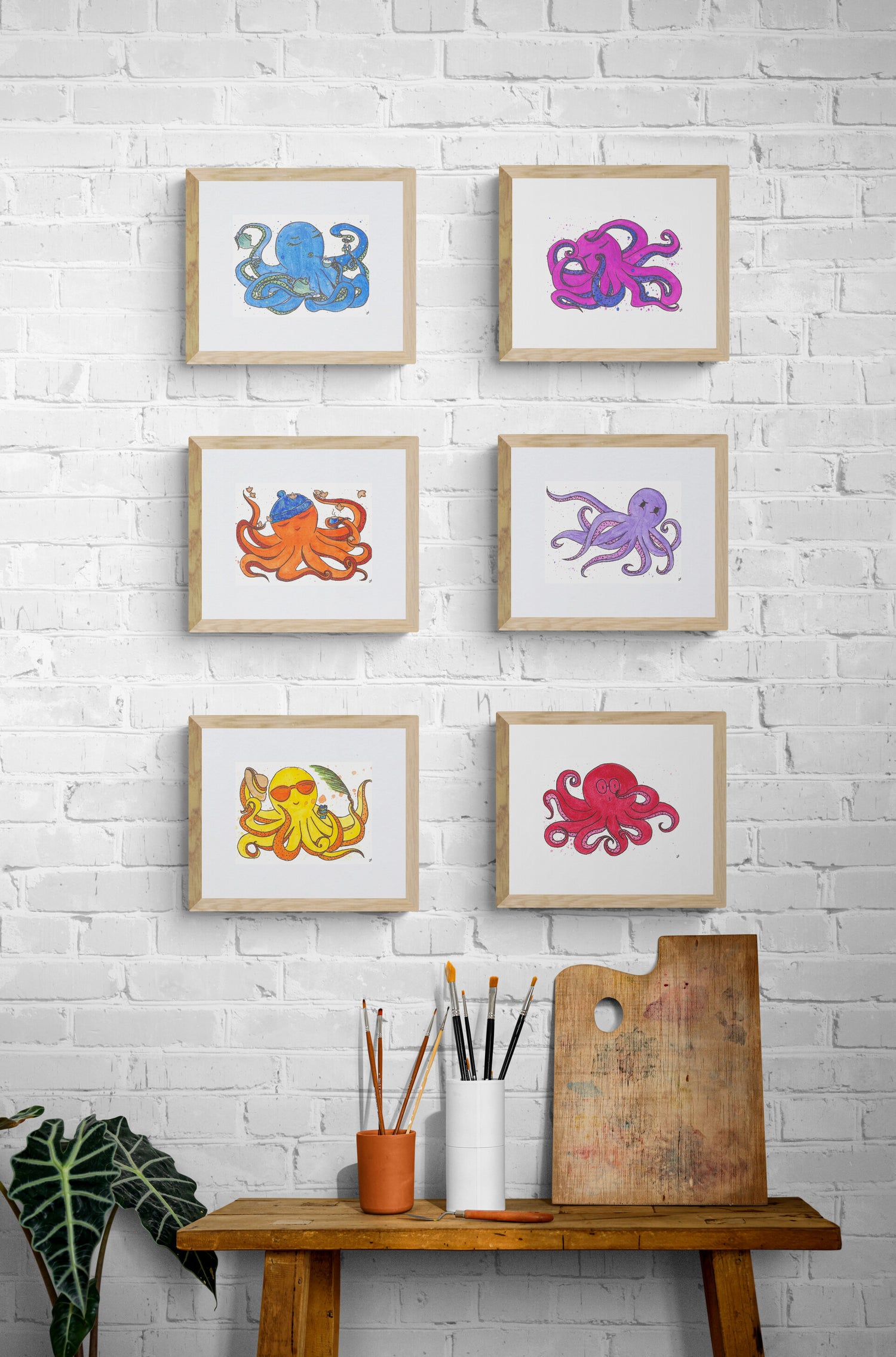 Immerse yourself in the world where playful octopuses 🐙 reflect your mood in a fun way! Brought to life through the medium of watercolours and digitised as prints for sharing with you. Limited sizes as the originals are small.