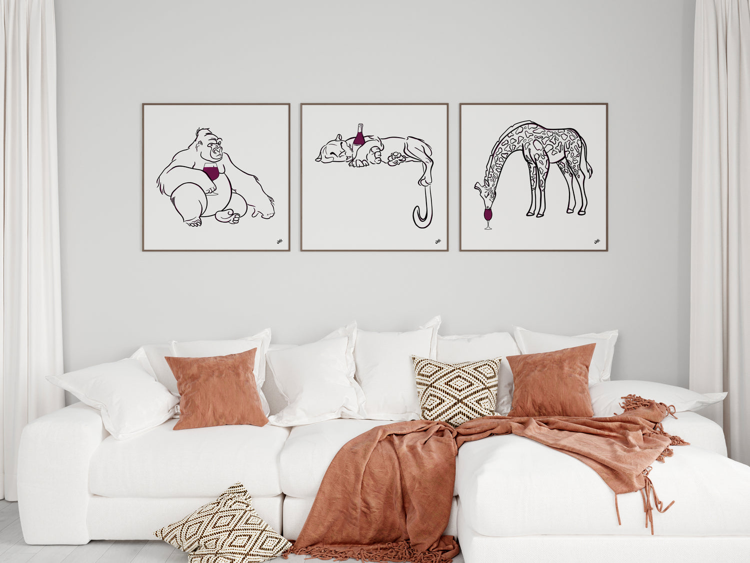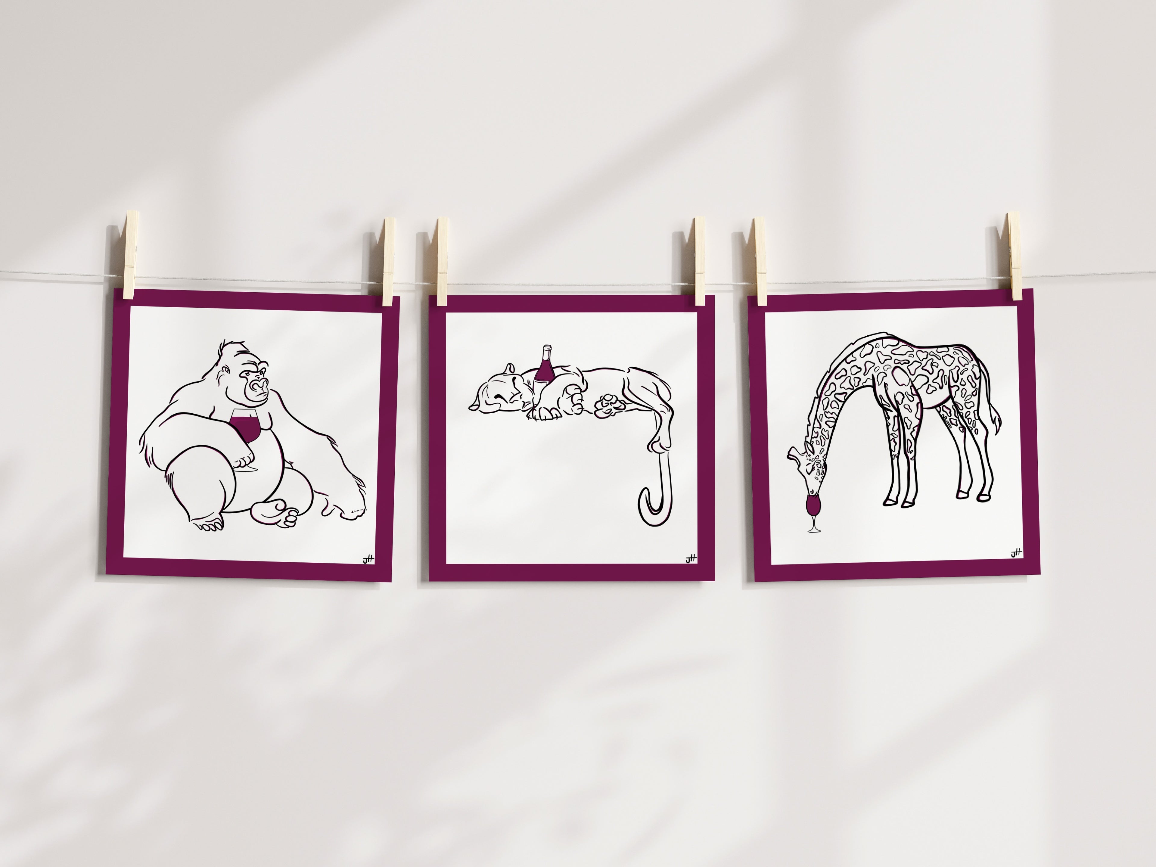 Whether you're a wine enthusiast, an animal lover, or simply someone who appreciates the beauty of art, the "Wine Animals" collection is the perfect set of prints to bring a touch of elegance and whimsy to your walls.